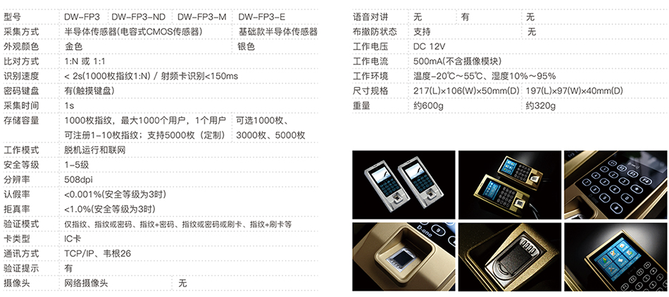 ● 最新半导体传感器,全面领先于普通光学识别技术,更好的判别假指纹、湿指、污损破皮手指 ● 直观的LCD液晶显示及语音验证提示 ● 内置摄像头,支持视频联动抓拍 ● 支持手动布撤防 ● 支持IC卡、指纹、卡加密码、编号多种组合验证方式 ● 辨识率和校正、容错性能强 ● 识别、验证速度快,算法先进 ● 抗静电能力强 ● 指纹仪离线、非法指纹、胁迫指纹报警 ● 具有防止恶意使用报警功能 ● 使用TCP/IP通讯,适用银行大范围异地联网