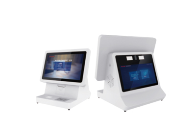 集触摸显示屏、身份证阅读、发卡器、打印机、摄像头等于一体;主屏17寸液晶触摸显示屏、副屏10寸液晶屏。